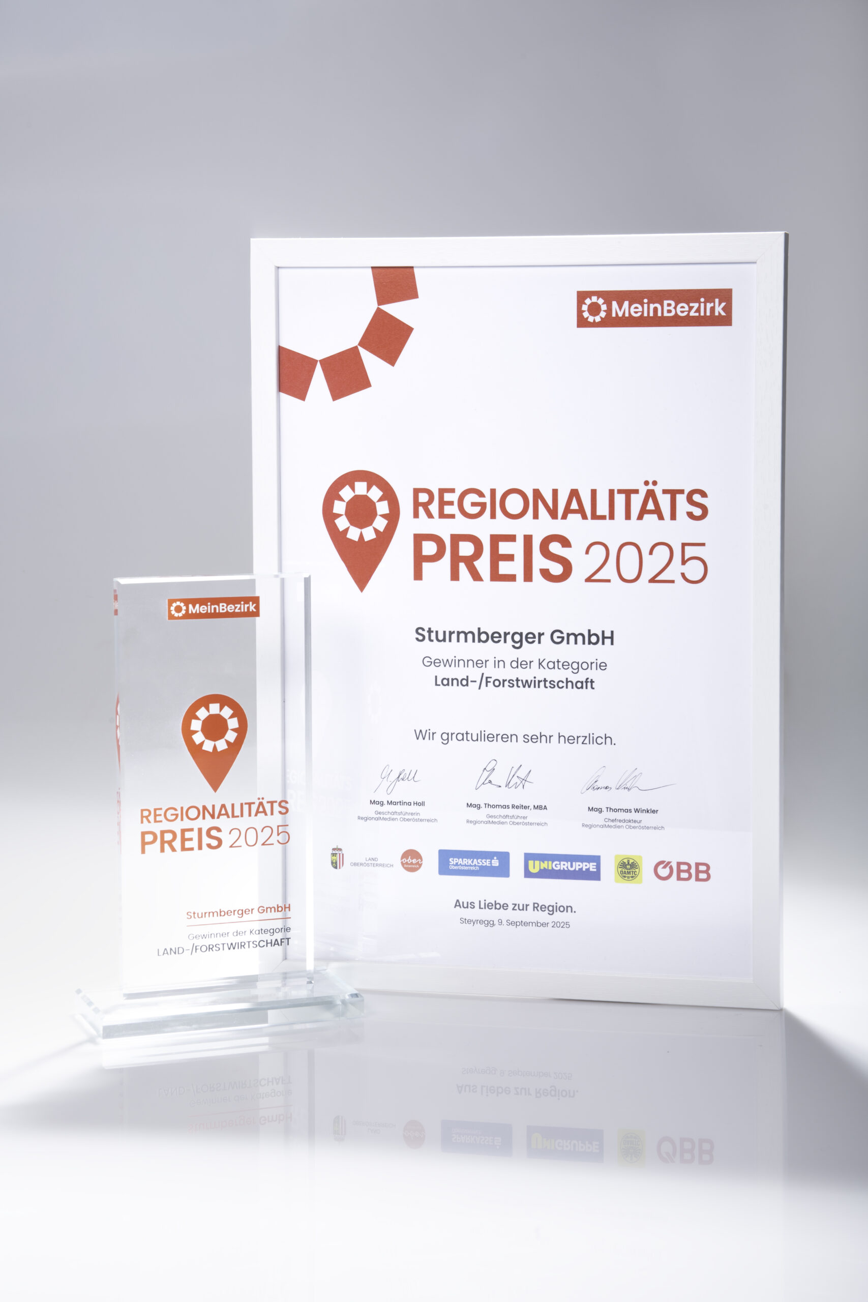 Wir freuen uns und sind stolz von den Regionalmedien den Regionalitätspreis 2025 in der Kategorie Land- und Forstwirtschaft erhalten zu haben. Besonders geehrt wurde der Unternehmenszweig Holzwert Management, der mit seinem innovativen Konzept zur nachhaltgen Nutzung regionaler Ressourcen überzeugt hat.